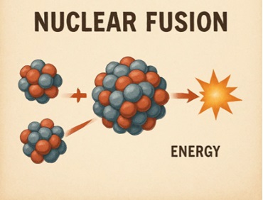 Fusion reactions power the Sun and other stars. In fusion, two light nuclei merge to form a single heavier nucleus. The process releases energy because the total mass of the resulting single nucleus is less than the mass of the two original nuclei. The leftover mass becomes energy. Einstein’s equation (E=mc²), which says in part that mass and energy can be converted into each other, explains why this process occurs. If scientists develop a way to harness energy from fusion in machines on Earth, it could be an important method of energy production.